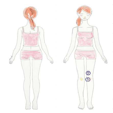 * ①内膝眼(ないしつがん) ②血海(けっかい)